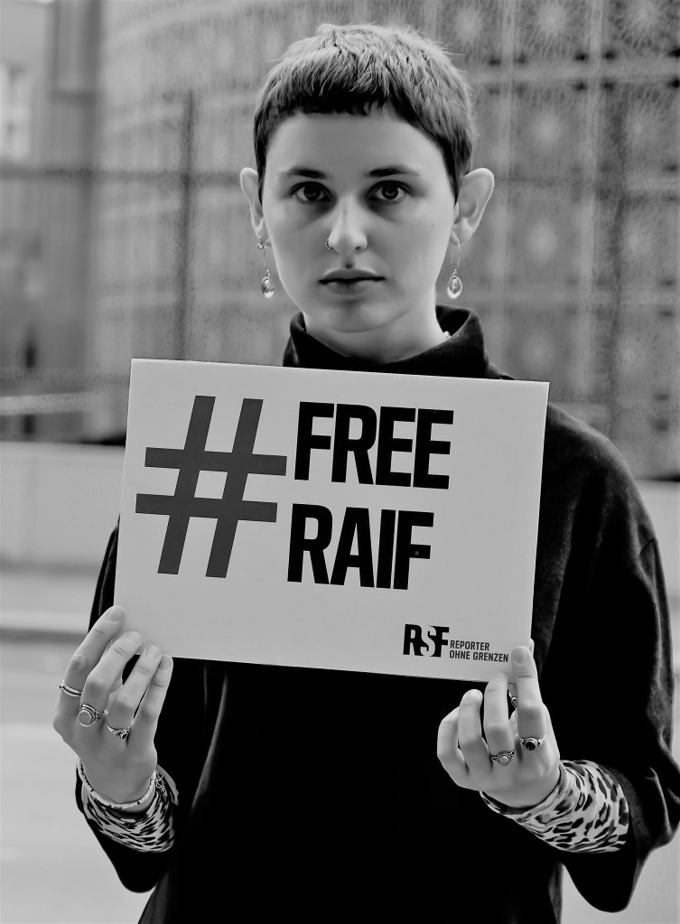 Protest for freedom of expression Pics Campaign by Reporters Without Borders to support the imprisoned blogger Raif Badawi.